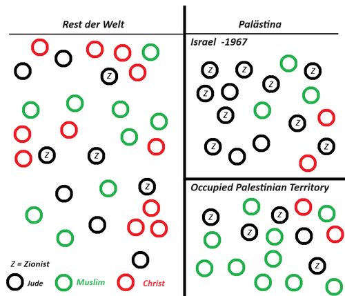 Jetzt gibt es auch Juden, die nicht in Palästina wohnen. Einige - nicht alle - unterstützen die Zionisten dort. Diesen Personenkreis erlaube ich mir, auch als Zionisten zu bezeichnen. Das ist anfechtbar, aber tolerabel und für die Zielsetzung dieses Models nicht relevant.